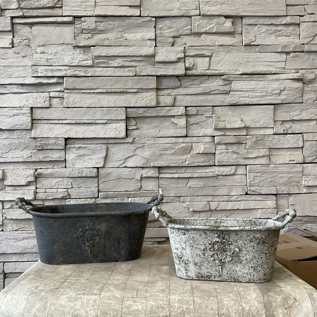 サイズ W24cm L18cm. H 16.5(20.5)cm 内径16cm 底穴あり 素材 Tin *商品によって塗装に個体差があります。 鉢のみの販売ページです 在庫数の変動が激しいため表示している在庫数は目安です。欠品する場合がございますのでご了承ください。