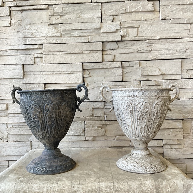 メーカーSALE!! 4950円→3300円 直径27.5cm H20.5cm 内経24.5cm 穴有り 受け皿無し 素材 グラスファイバー 商品によって塗装に個体差がございます。 アンティークの風合いを出す為に部分的に汚し加工を施しております。 グラスファイバー製品には側面に縦の筋が入ります。 これは製造工程上発生してしまうものであり不良品ではございません。 ポットの歪みや傾き、表面や内側のへこみ、フチのカケやくぼみがある場合がございます。 在庫数の変動が激しいため表示している在庫数は目安です。 欠品する場合がございますのでご了承ください。