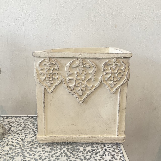 アンティーク調の鉢♪ お花にもリーフにも合います サイズ 巾19.5cm 奥15.5cm 高15.5cm 内寸巾14.5cm 奥12.5cm 高8cm 穴有り 受皿無し 素材 セメント アンティーク調に加工しているため色剥げや小さな欠けがある場合がございます。 在庫数の変動が激しいため表示している在庫数は目安です。 欠品する場合がございますのでご了承ください。