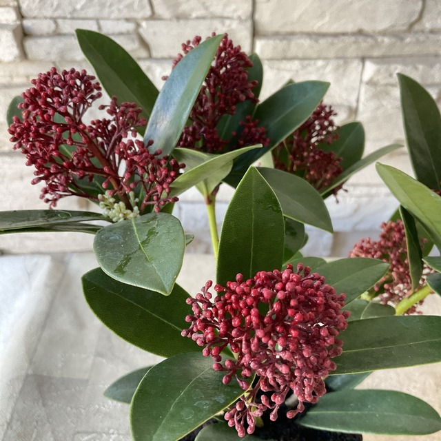 【商品名】スキミア ルベラ 3寸ポット 【分類】常緑低木 【開花期】春 【草丈】60~100cm前後 *草丈は、参考にしていただく一般的なサイズで土地や育て方によって異なります。 【管理場所】日当たりの良いところ~半日陰 【鉢の大きさ】3寸ポット 切り花でも人気のスキミア *画像は、イメージで現品のお届けとは限りません。 *植物の成長や季節によっては、開花していなかったり、お花や葉がついていない状態でのお届けもあります。ご了承ください。 【育て方】 日当たりの良い場所、半日蔭で育ててください。 土の表面が乾いてからお水を与えてください。 こちらは1鉢ずつの販売です。 ※植物ですので個体差がございます。 *植物は日々成長しております。 花苗は商品画像の状態と大きく変化がある場合、メールにてご連絡を差し上げる場合がございます。メール拒否設定などでご連絡がつかない場合、こちらからキャンセルさせていただくことがございますのでご了承くださいませ。 在庫管理には気をつけてはおりますが、店頭でも同時販売しておりますのでご注文いただいた後、店頭で売り切れている場合、キャンセルをお願いする場合がございます。 ご了承くださいませ。 【贈り物としてご購入のお客様へ】 植物の状態は日々変化します。お花がお休みしているものや剪定したばかりのものなど状態は様々ですので、花苗や鉢物を贈り物としてご注文をされる際は植物の特性なども考慮の上ご検討ください。 【ラッピング・化粧箱】 ラッピング・化粧箱(有料)をご希望の場合は、ラッピングを別途ご購入いただきお手続きください。 *ラッピングのお手続がない場合は、梱包材は環境に配慮しリサイクルのものを使用しています。 ご了承ください。