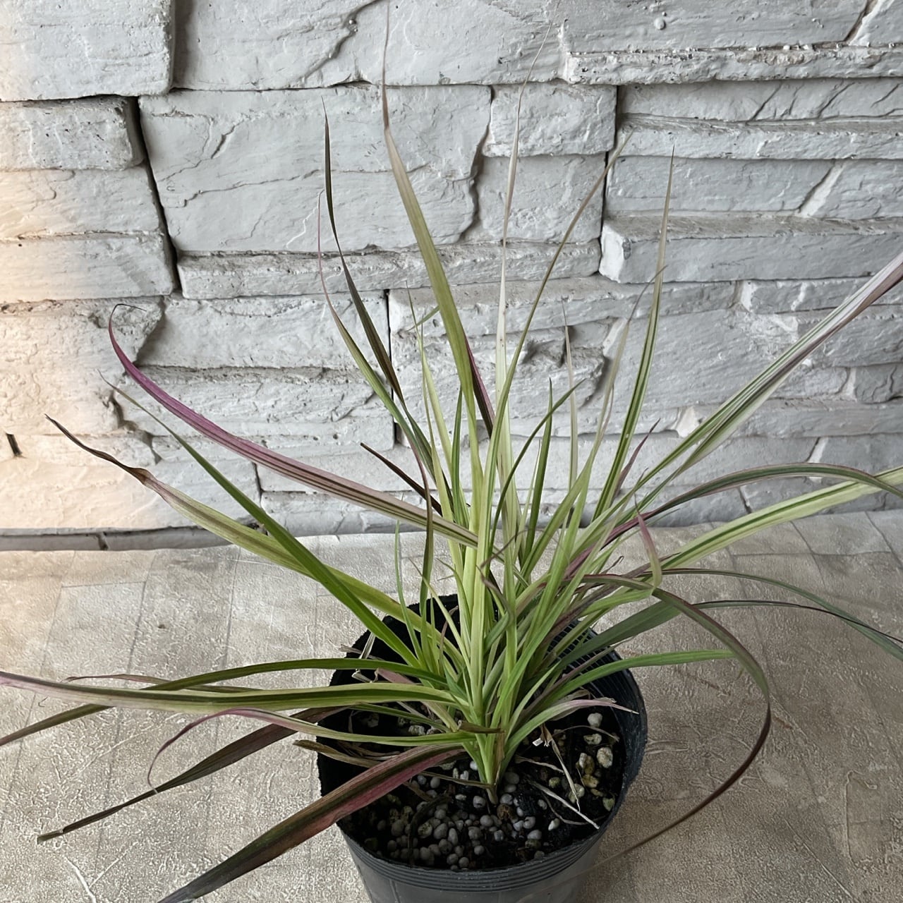 赤紫色〜ピンク色の細長い葉がアーチ状に広がる観賞用グラスです。