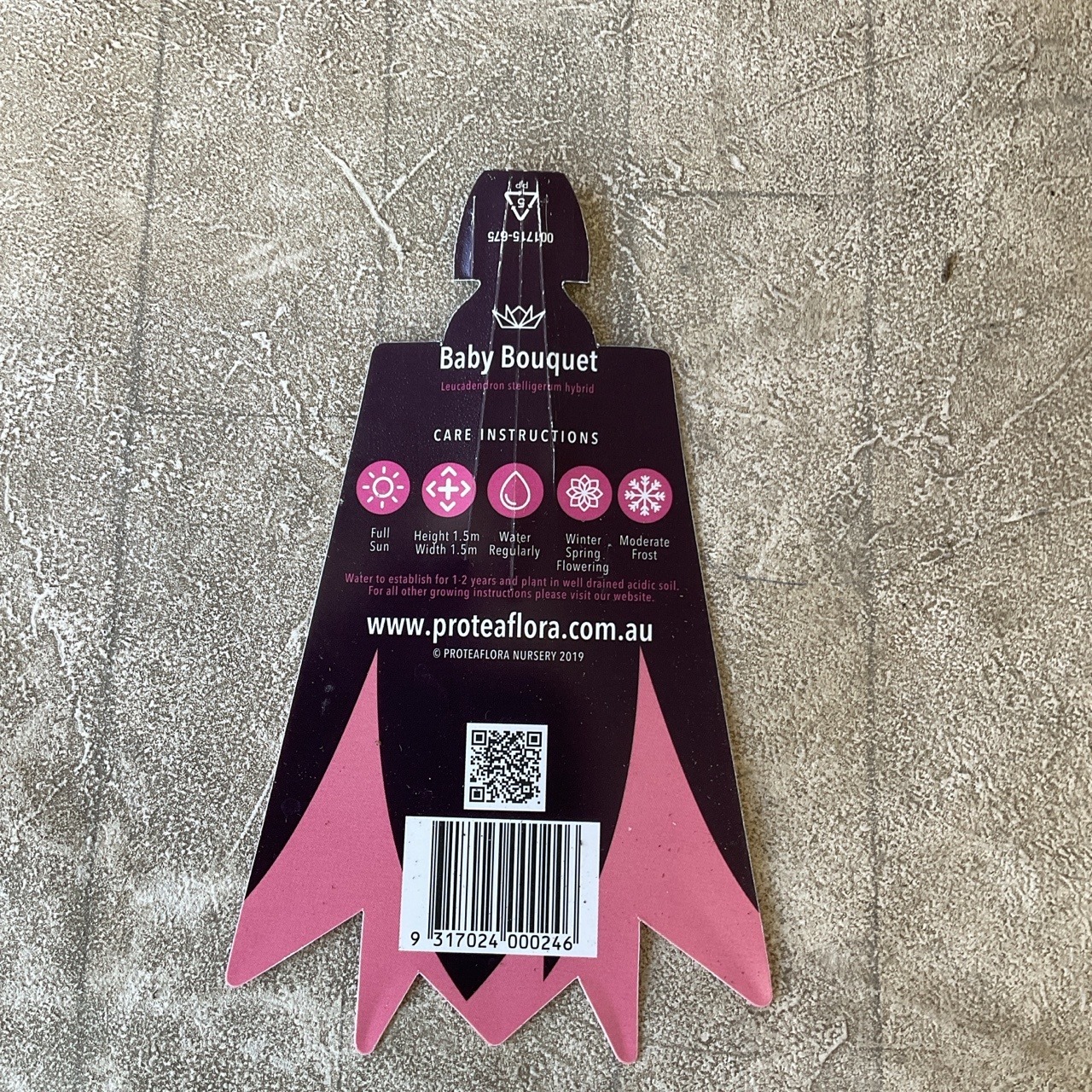 チューリップの形を連想させる独特のかわいらしいリューカデンドロン ベビーブーケット