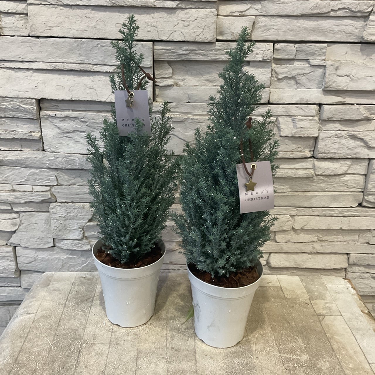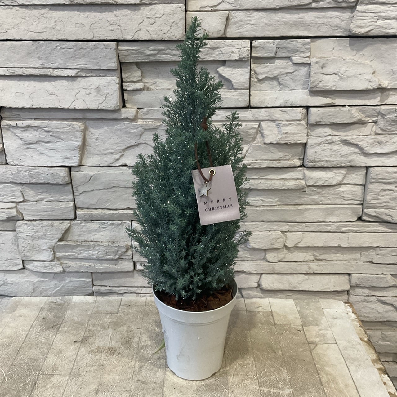 ラメ付きコニファー シルバースター(クリスマスタグ付き) 4寸鉢