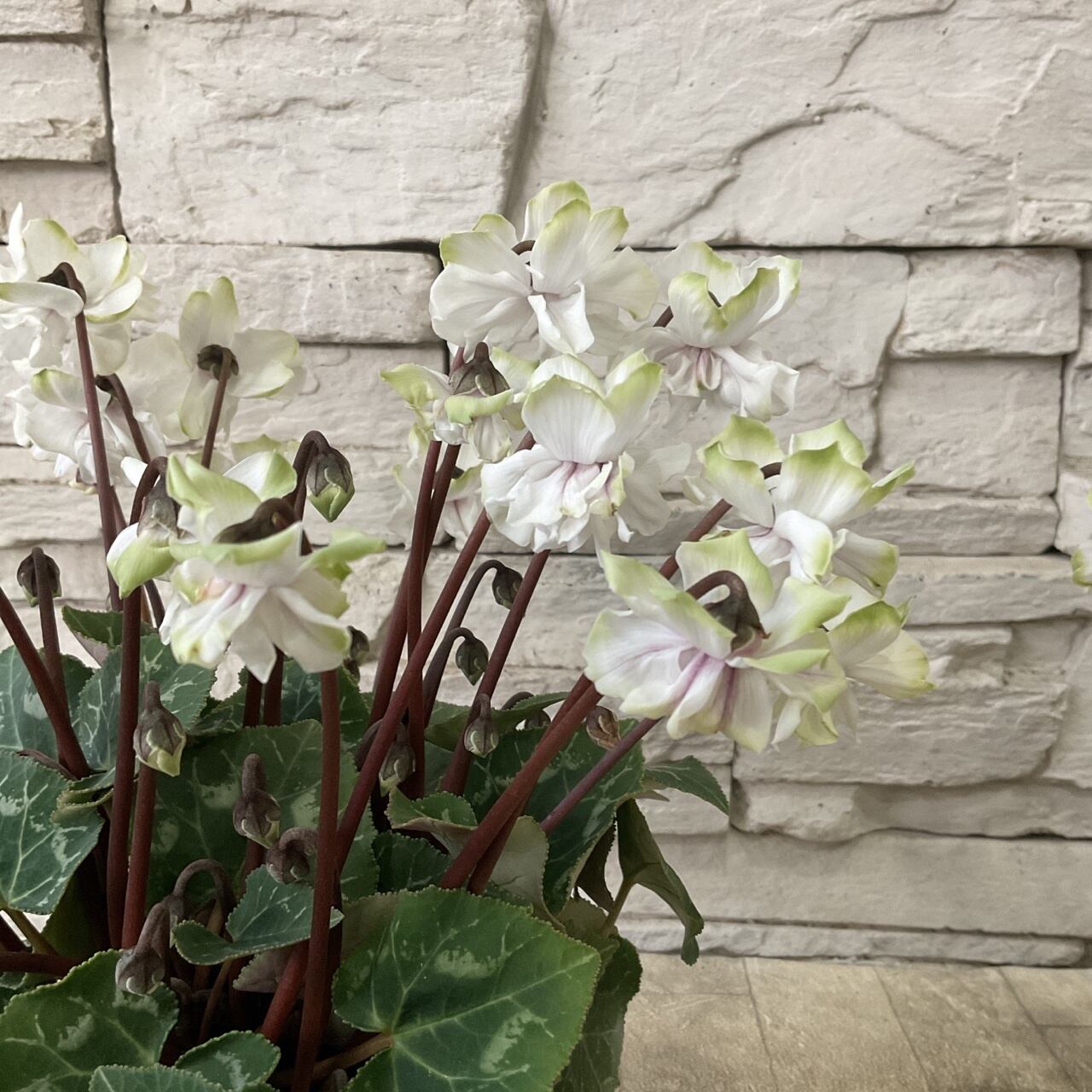八重咲きミニシクラメン 抹茶ラテ 3寸ポット