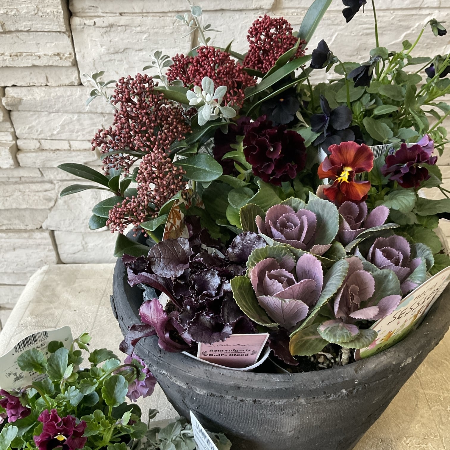 【自分で作る寄せ植え花苗セット】スキミアビオラビオラのダークレッド寄せ植え