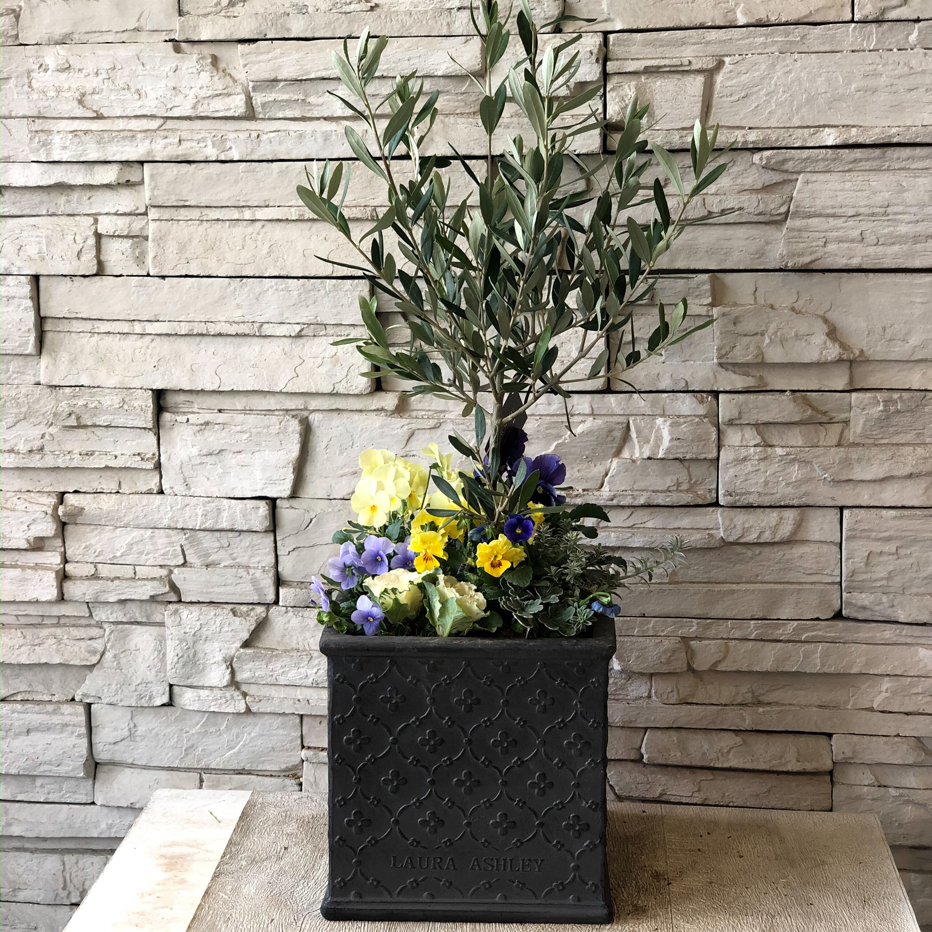 人気のローラアシュレイの鉢♫ オリーブのギャザリング寄せ植え