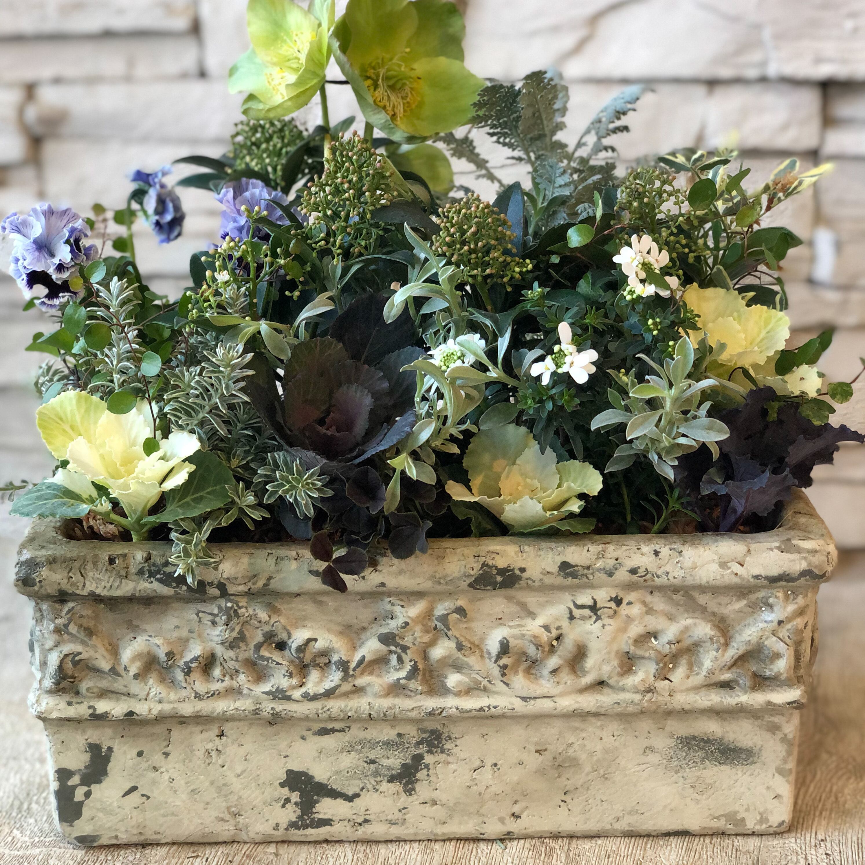 花苗の状態により寄せ植えしている草花は品種変更する場合がございます。ご了承ください。