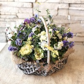 フラワーバスケット カゴにお花をいっぱい詰め込んだギャザリング寄せ植え