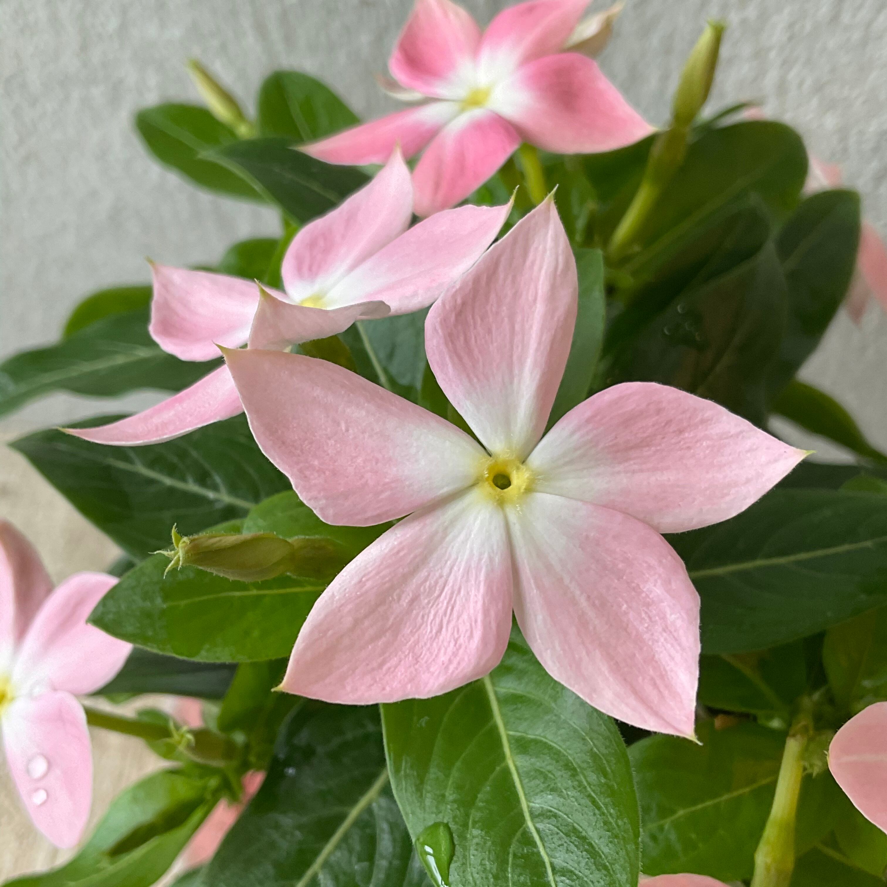 夏の暑さを和らげてくれるふんわり優しい花色の星咲き 日々草です。