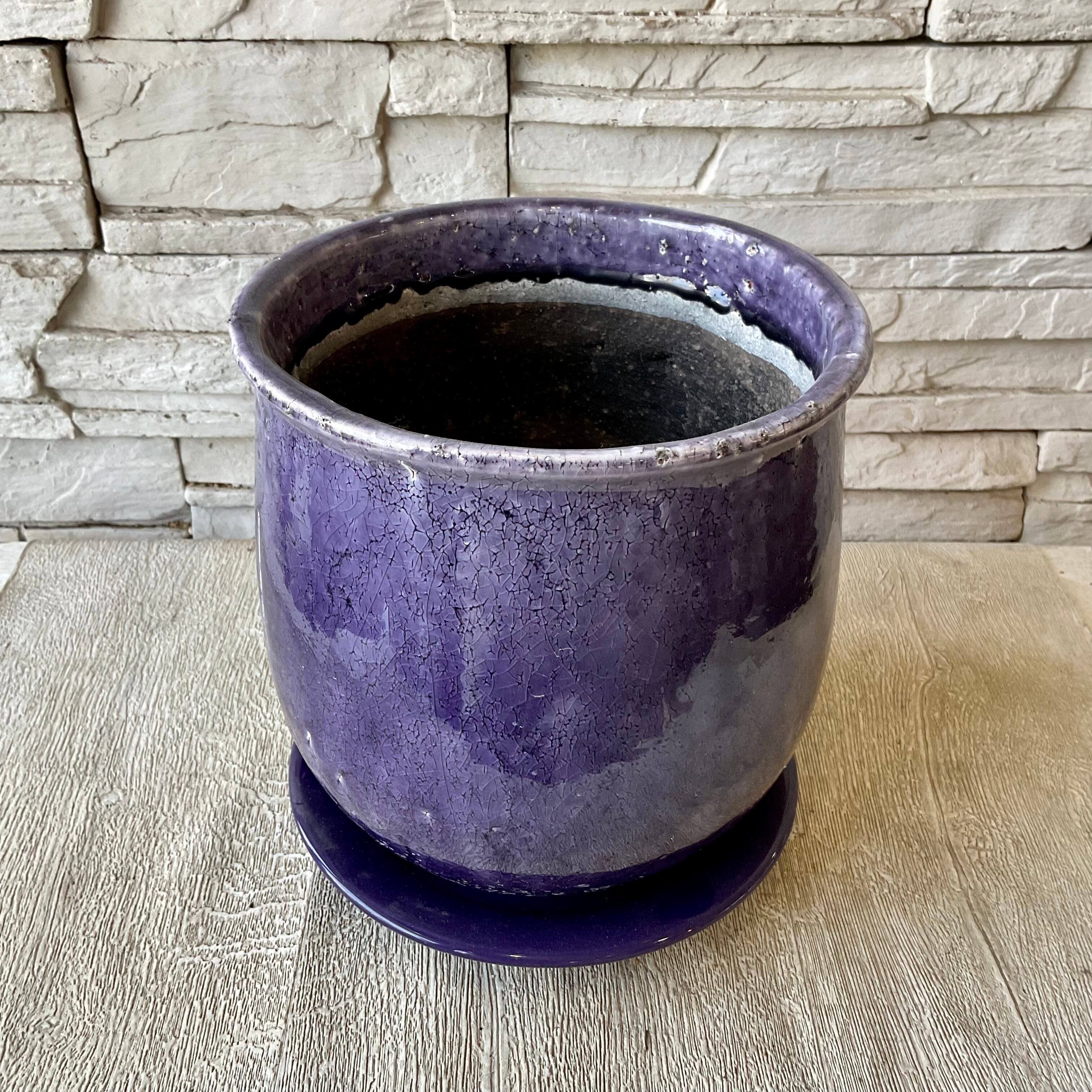 受皿付陶器鉢 ステララウンドLL 紫