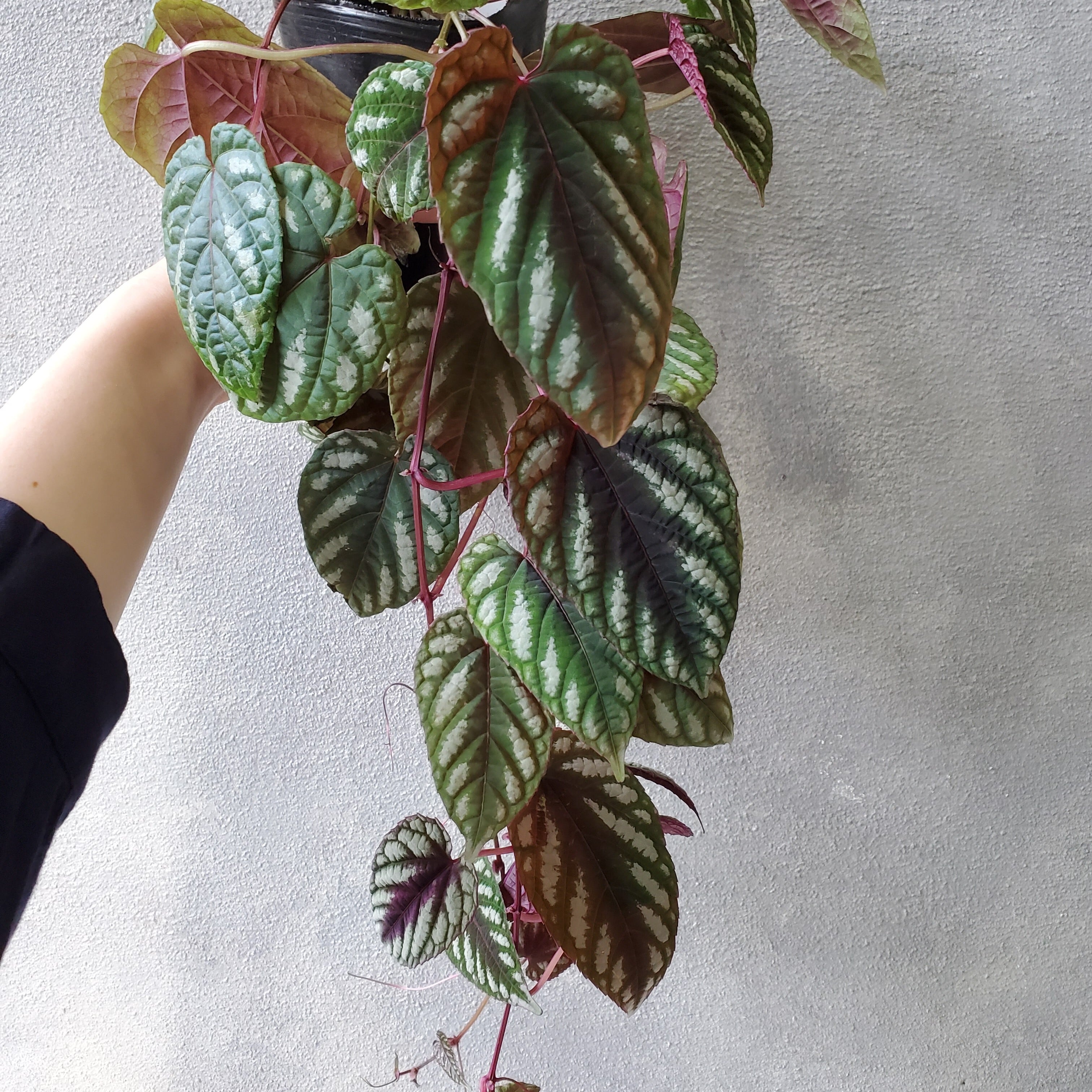 葉っぱの模様が綺麗で葉裏、茎が紫色のシックでおしゃれな植物。