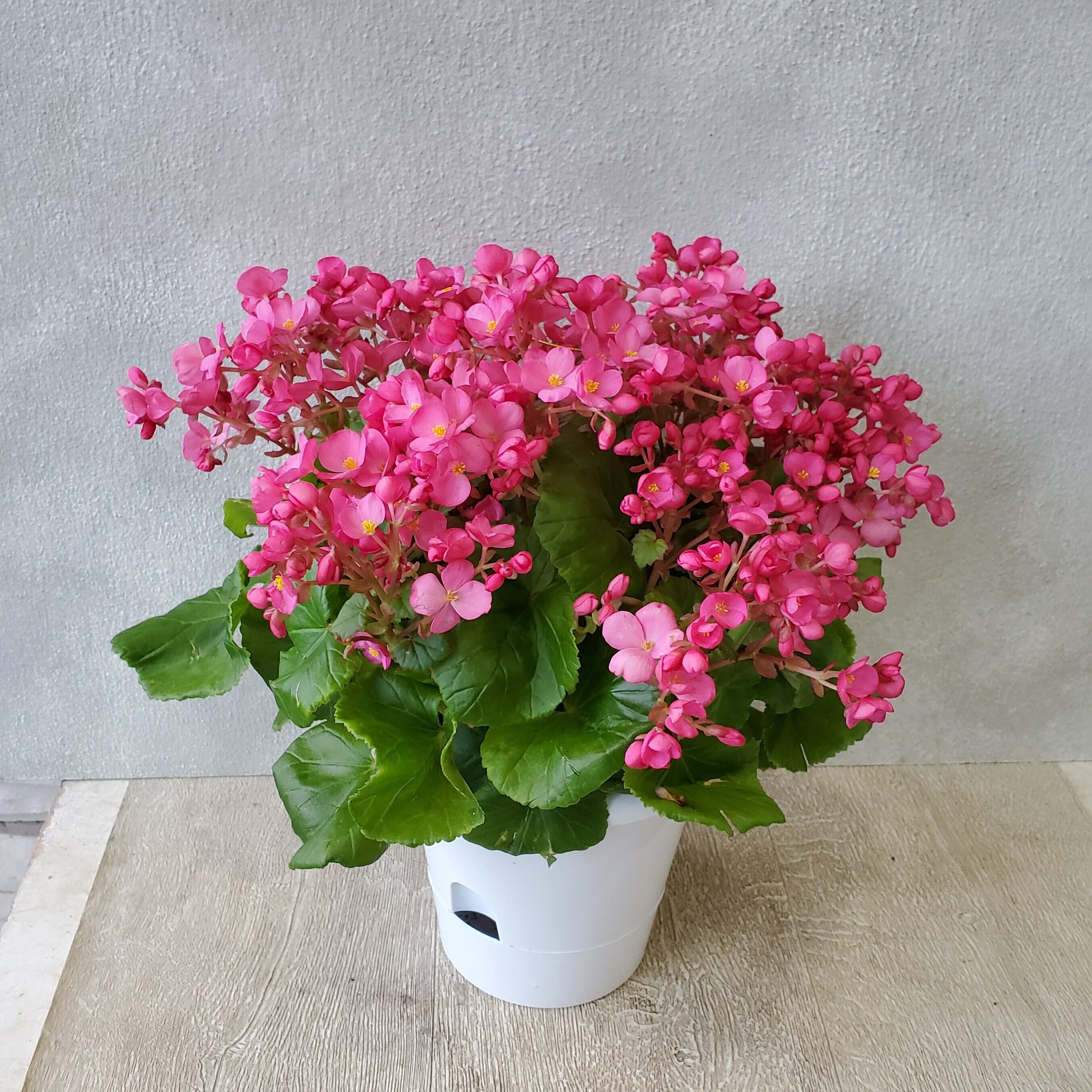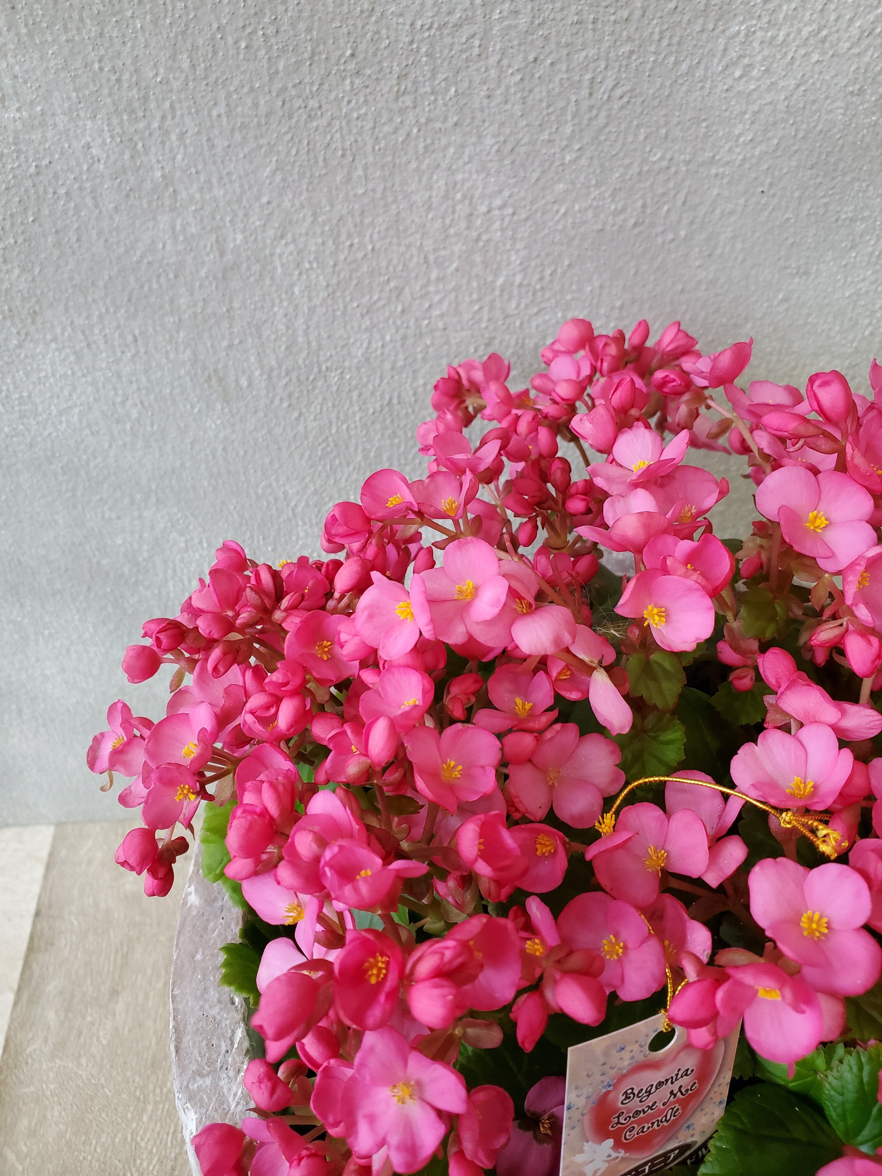 ピンクの花がいっぱいに咲くベゴニア ラブミーキャンドル