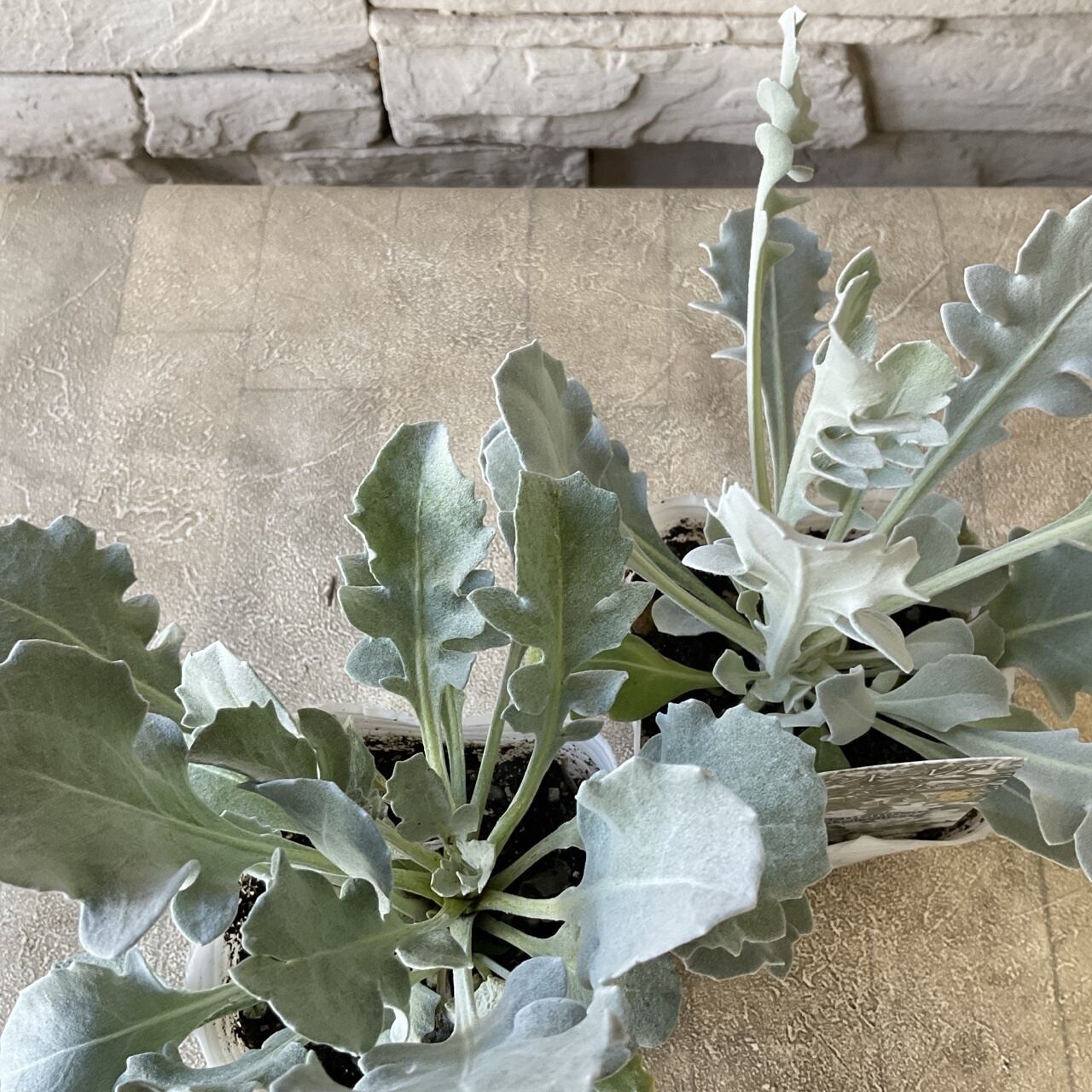 銀葉の宿根ヤグルマ草、初夏にはピンクの可愛い花が咲きます。