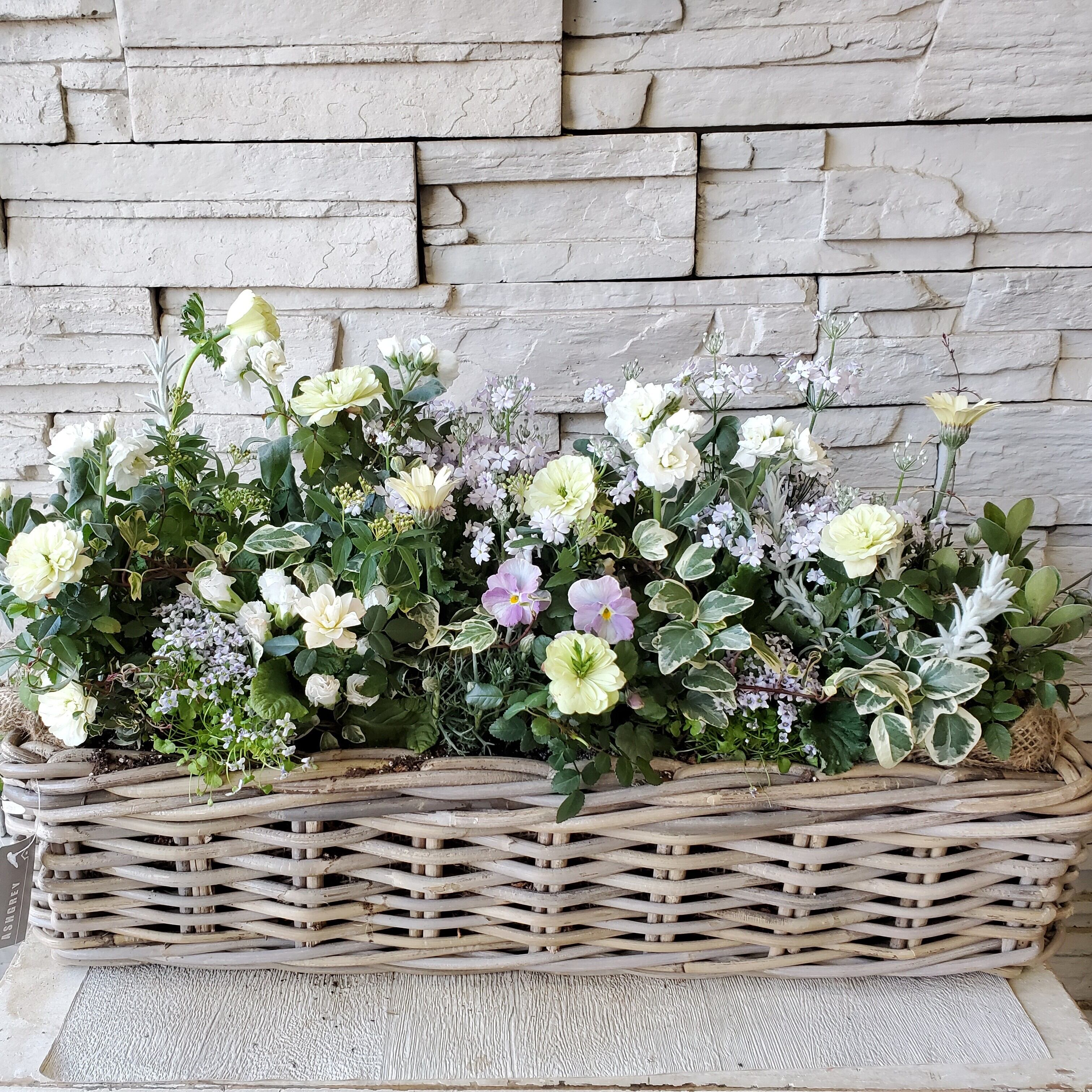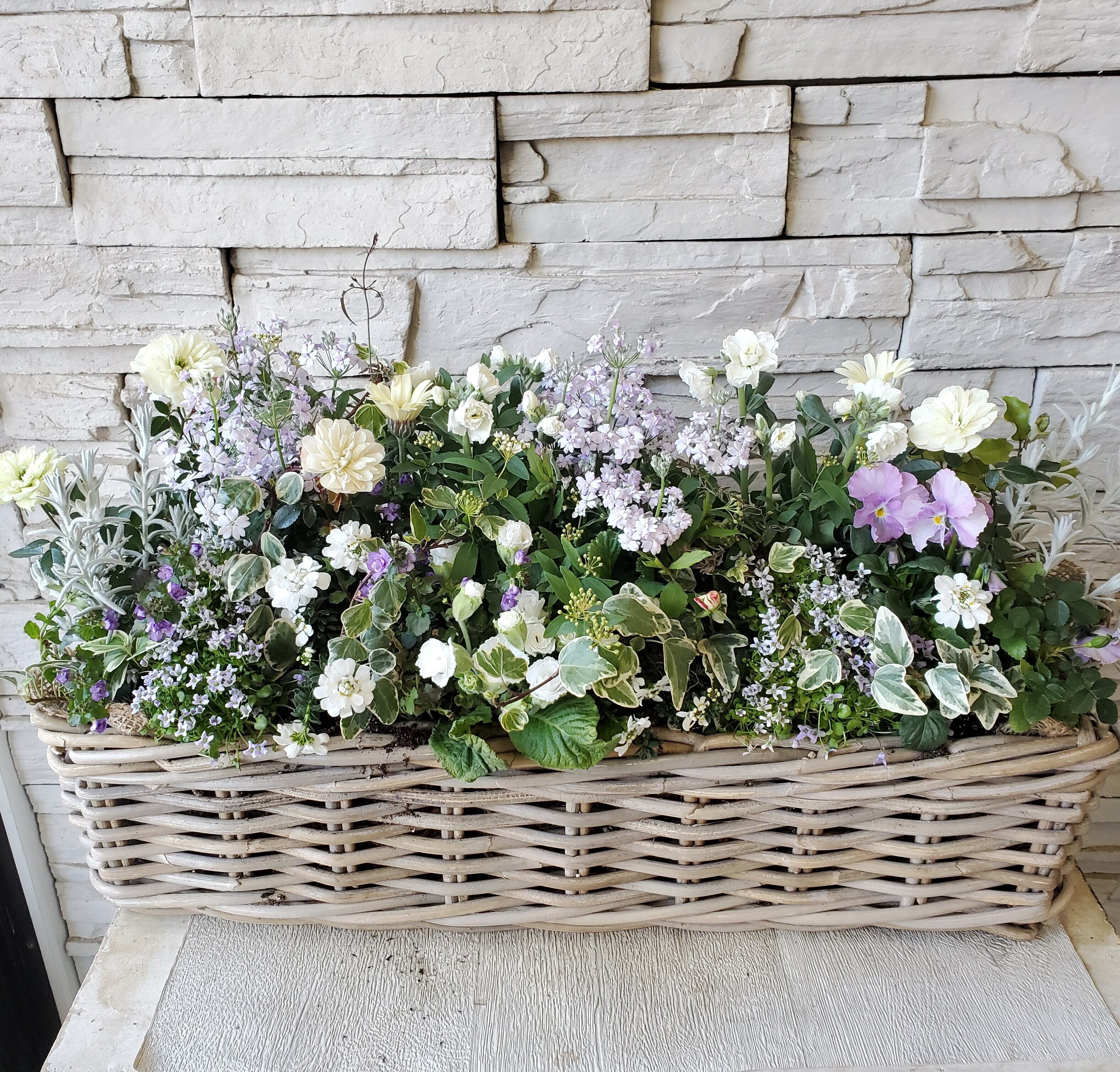 淡いパープルとホワイトのエレガント寄せ植え