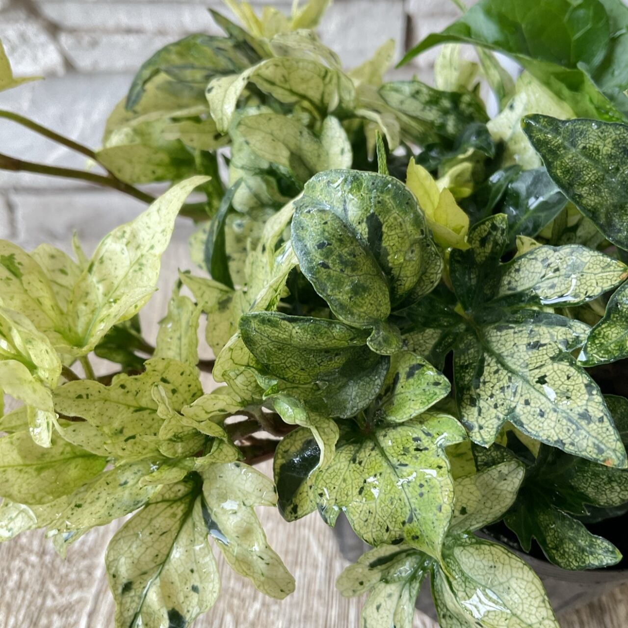 本葉は緑ですが、新葉が白くなるおしゃれなヘデラは、「白雪姫」の枝変わり品種です。