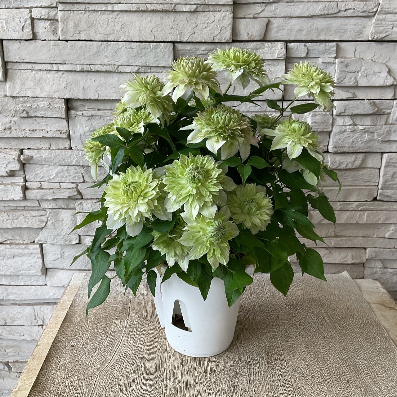 咲き始めは淡い緑色〜咲き進むと花の外側から純白に変化し、中心部は淡い緑色が残ります。