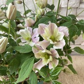 薄紫に中心部は淡い緑色が残り、上品なクレマチスです。