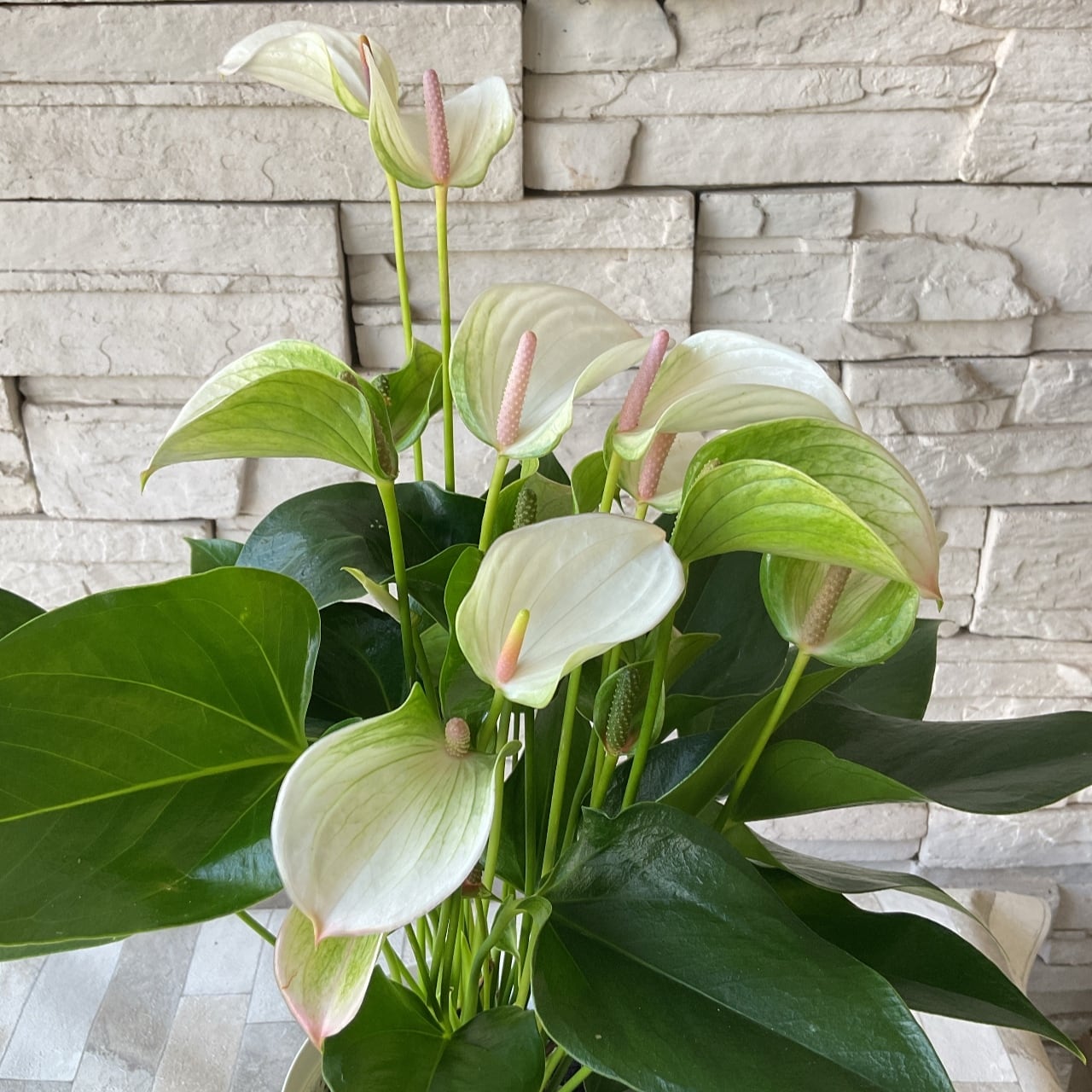 白地に淡いピンクが美しいアンスリューム。