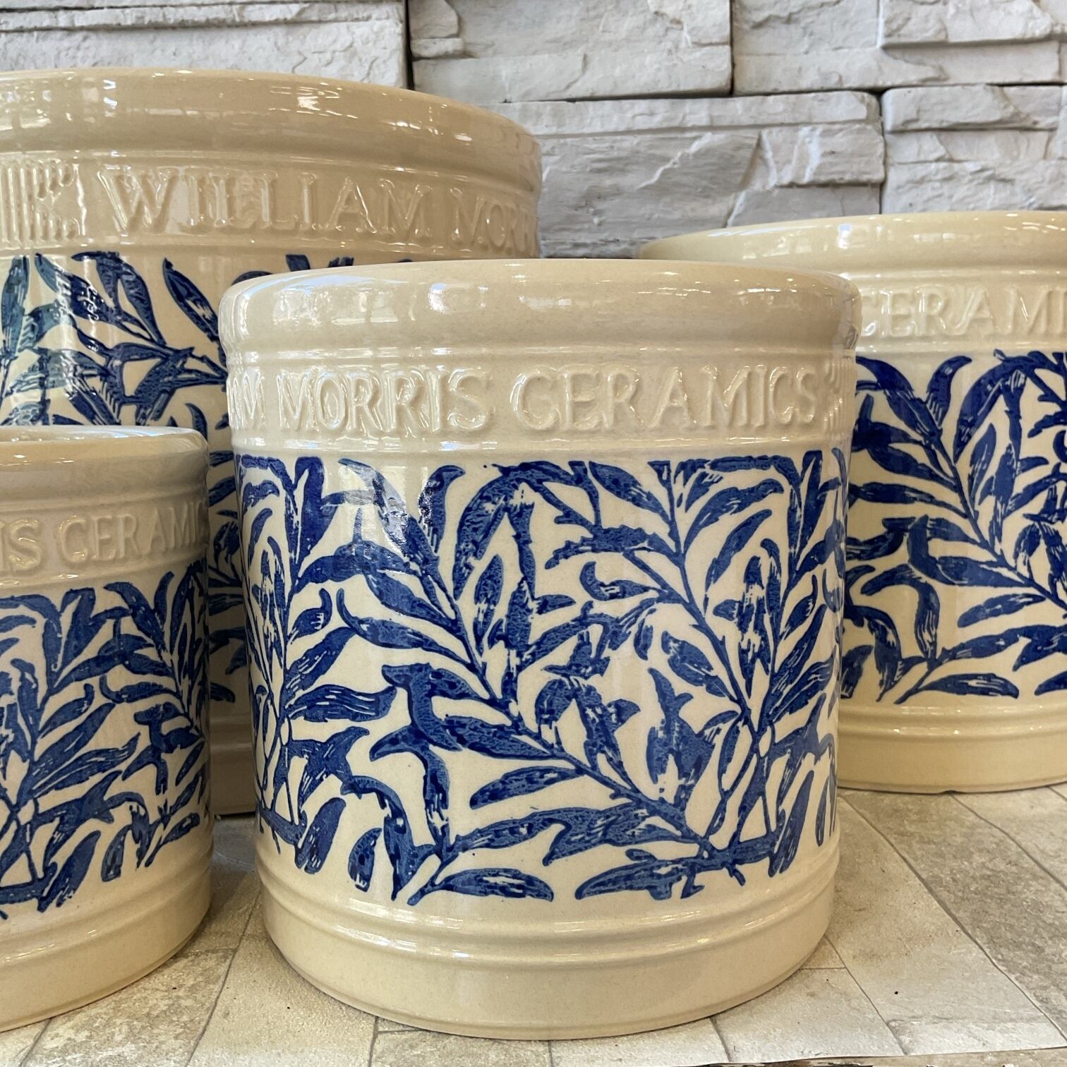 ヴィクトリア朝のイギリスでウィリアム・モリスが作り上げたCeramic(陶器)はベースがクリーム色に濃いめのブルーで繊細な柄を描いたこれまでに無い見事な職人技にてガーデンコンテナが完成しました。