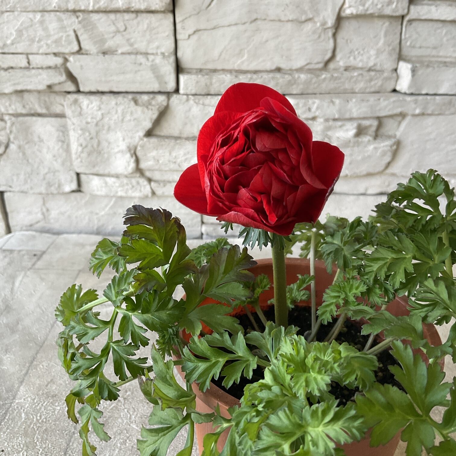 ボリュームのある八重咲で赤や青などの目の覚めるような鮮やかな色の花を咲かせるアネモネです。