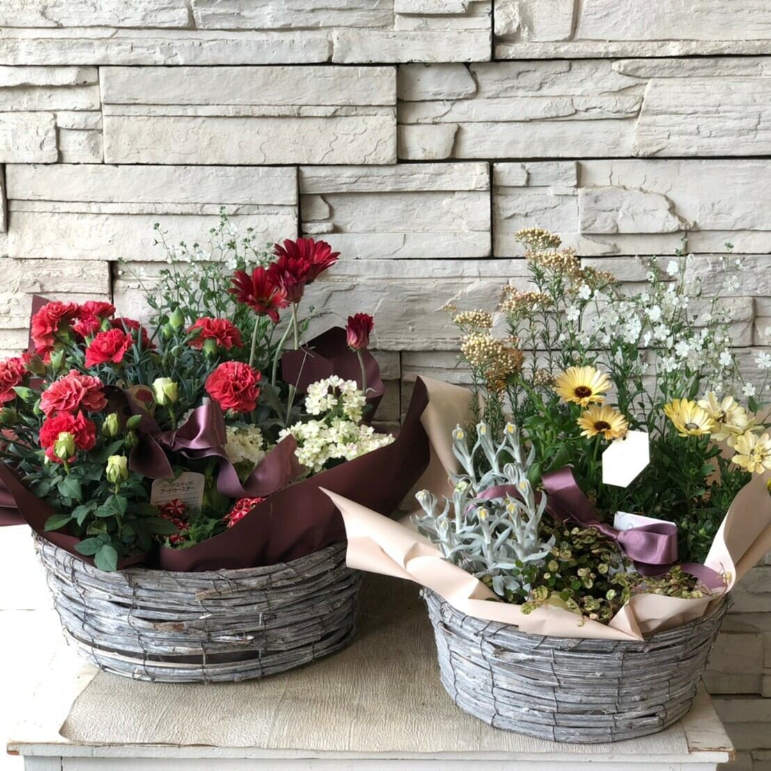 少しの間このまま飾っていただき、お持ちの鉢に寄せ植えしたり、お庭に植えたり。