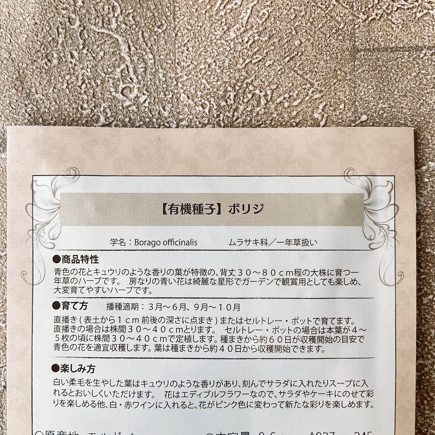 【ハーブ】ボリジ ORGANIC SEEDS 有機種子・固定種