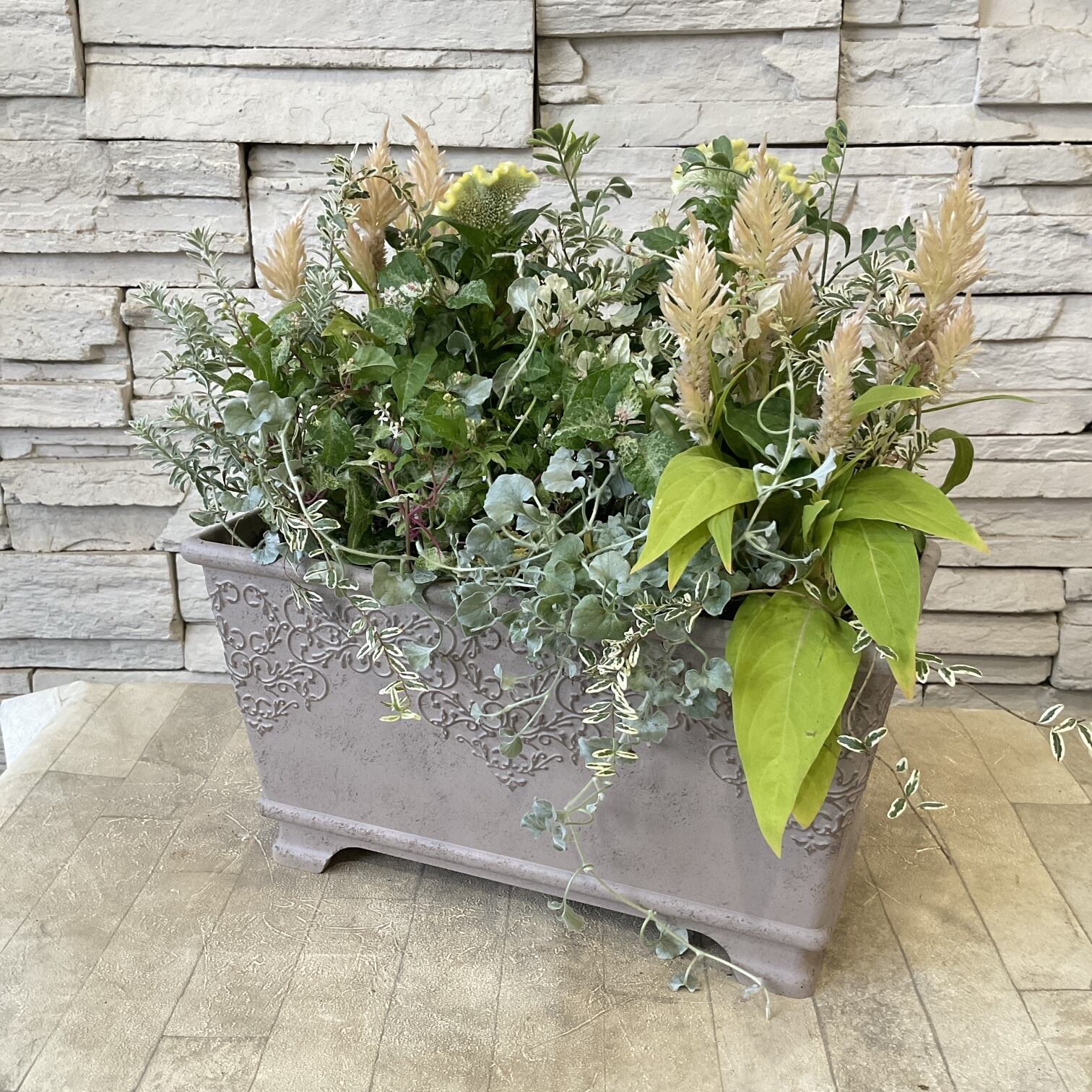 ◆足付きコレットプランターに寄せ植えをした商品です。