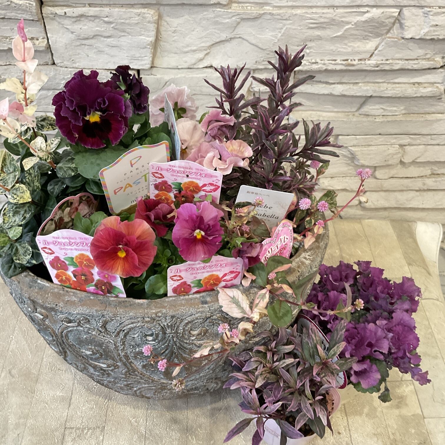 【冬のピンク&パープルの寄せ植え花苗セット】