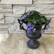 鉢から溢れだすように咲き、香りが良くとっても可憐なすみれのブリキ鉢植えです。
