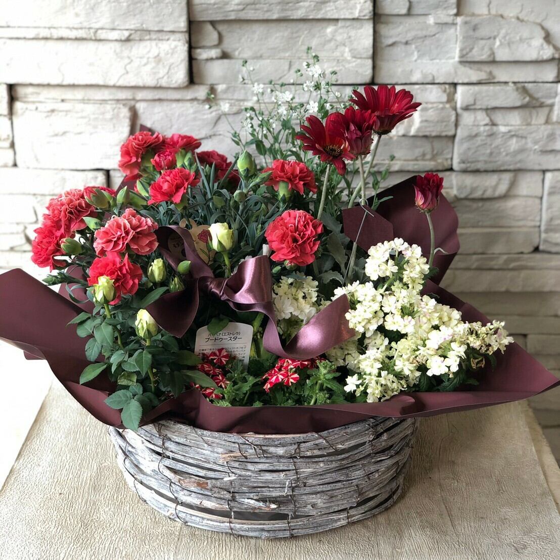 【フラワーギフト】花かご(寄せ鉢)Lサイズ