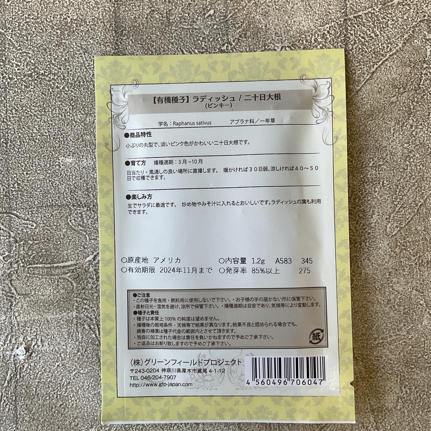 ラディッシュ ピンキー ORGANIC SEEDS 固定種 有機種子